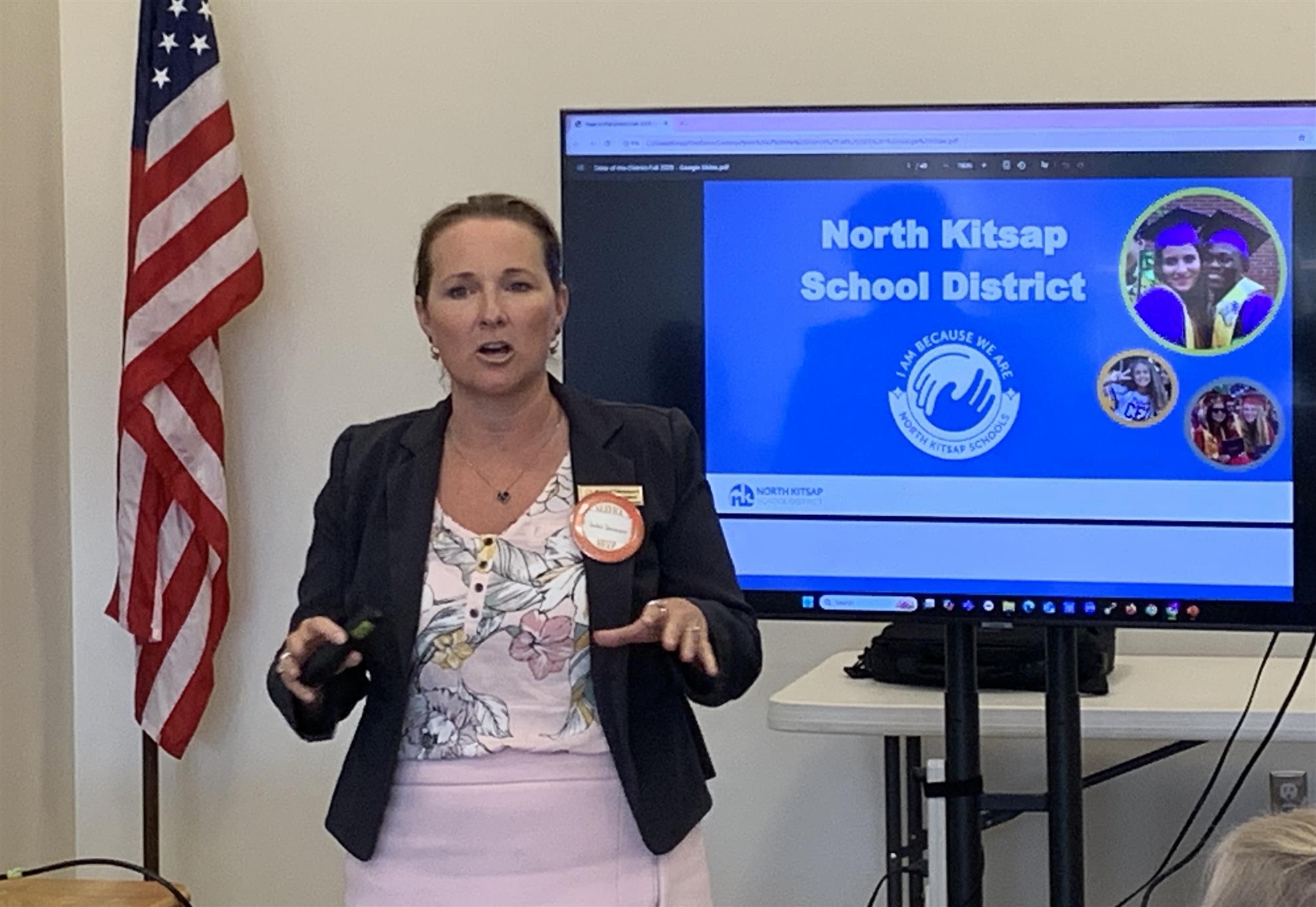 North Kitsap School District Superintendent Dr. Rachael Davenport - and key members of her team - spoke to Kingston North Kitsap Rotarians at their noon meeting, September 24.
