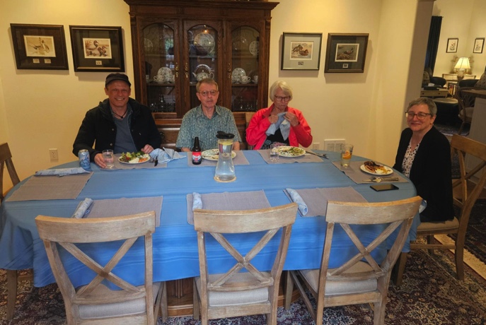 Our gracious hosts opened their Kingston home to a pot luck no two Clubs could take down. There were no paper plates. Nope. No paper napkins. Nope. First class. The setting, complete with northwest fire pit, was incomparable. Turn out spilled to tables other than the main.